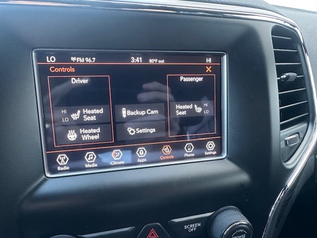 Blind-Spot Alert; Hill Descent Control; Hill Start Assist Control; Traction Control; Electronic Stability Control; ABS (4-Wheel); Alarm System; Keyless Entry; Keyless Start; Air Conditioning; Power Windows; Power Door Locks; Cruise Control; Power Liftgate Release; Power Steering; Tilt & Telescoping Wheel; AM/FM Stereo; Bluetooth Wireless; Uconnect; ParkSense Park Assist; ParkView Back-Up Camera; Dual Air Bags; Side Air Bags; F&R Head Curtain Air Bags; Knee Air Bags; Heated Seats; Power Seat; Daytime Running Lights; Fog Lights; Rear Spoiler; Oversized Premium Wheels 20"+