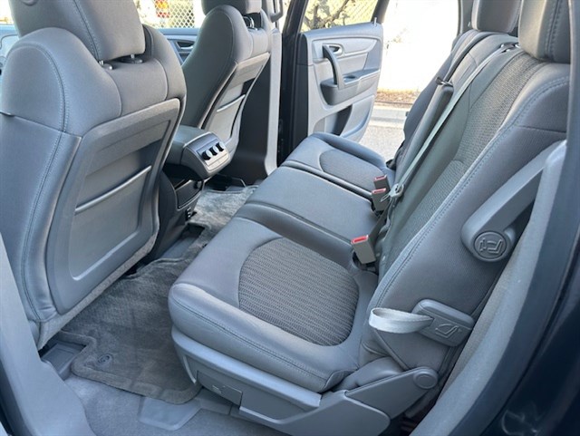 Traction Control; StabiliTrak; ABS (4-Wheel); Keyless Entry; Air Conditioning; Air Conditioning, Rear; Power Windows; Power Door Locks; Cruise Control; Power Steering; Tilt & Telescoping Wheel; AM/FM Stereo; CD/MP3 (Single Disc); SiriusXM Satellite; Bluetooth Wireless; OnStar; Backup Camera; Dual Air Bags; Side Air Bags; F&R Head Curtain Air Bags; Power Seat; 8-Passenger Seating; Daytime Running Lights; Rear Spoiler; Roof Rack; Steel Wheels